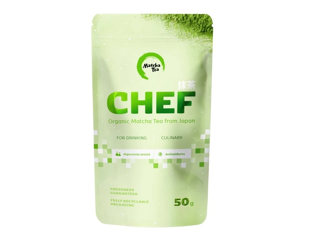 Bio Matcha Tea Chef je kulinárska trieda japonskej matchy určená špeciálne na varenie a pečenie. Má výraznejšiu, trpšiu chuť a silnú arómu, ktorá krásne vynikne v dezertoch, krémoch, smoothie, kašiach, ale aj v polievkach, dresingoch alebo mäsových pokrmoch. V každej kuchyni pridá nielen charakteristickú zelenú farbu, ale aj cenné látky ako vitamíny A a C, vlákninu, bielkoviny a prírodný kofeín (teín), ktorý dodáva energiu až na 6 hodín.