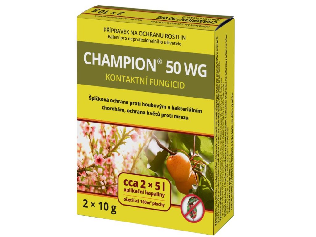 Champion 50 WP obsahuje hydroxid meďnatý, ktorý je fungicíd a baktericíd s protektívnou účinnosťou a širokým spektrom účinku. Champion 50 WP sa používa proti plesni zemiakovej, cibuľovej, uhorkovej a révovej, proti čiernej paradajkovej, septorióze paradajok a zeleru, bakteriáknej škvrnitosti uhoriek, kučeravosti listov broskyne, proti ochrane kvetov marhúľ jabloní a mrazov hrušenia (je možné použiť aj v školách pred olistnením), biele škvrnitosti listov jahôd, rakovinové umieranie vetiev u čerešní a višní, proti hnednutiu listov orechov a puchrovitosti slivky.