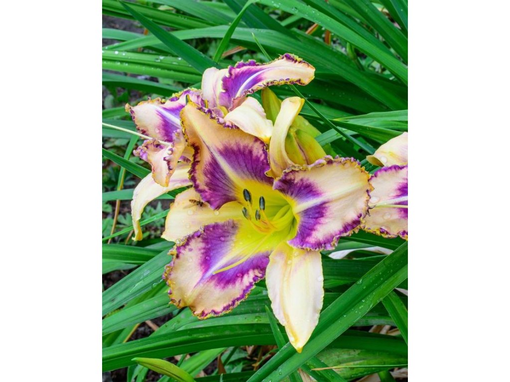Denivka 'Unlock the Stars' (Hemerocallis 'Unlock the Stars') vás očarí veľkými kvetmi v ružovo-fialovej farbe kombinovanej so žltými tónmi a zelenkavým stredom. Okraje okvetných lístkov sú krásne zvlnené a lemované zlatou linkou.