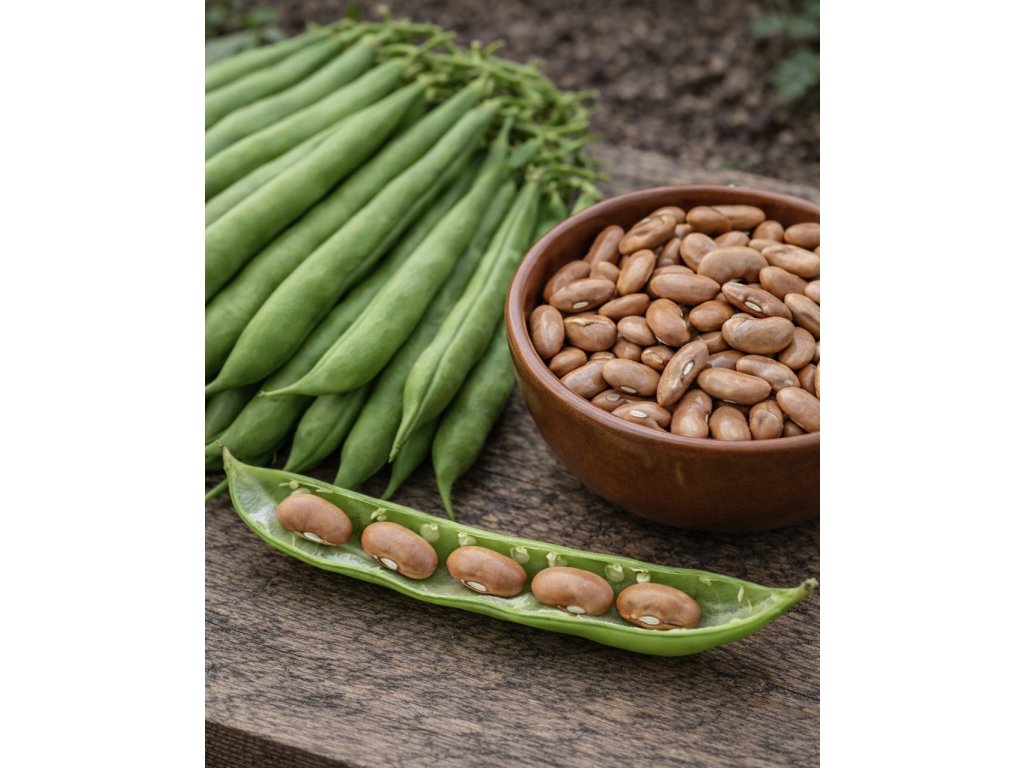 Skorá kríčková odroda žltej fazule s hnedobéžovými zrnami dĺžky asi 15 cm. Výška rastliny je 35 až 40 cm. Odroda je vhodná na vylupovanie čerstvého zrna vo voskovej zrelosti aj na zber suchého zrna.