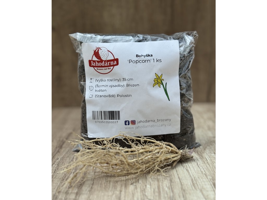 Hosta 'Popcorn' má stredne veľké až veľké modrozelené listy so žltým až žltozeleným stredom. V lete je stredná časť takmer biela a dopĺňajú ju fialové kvety.