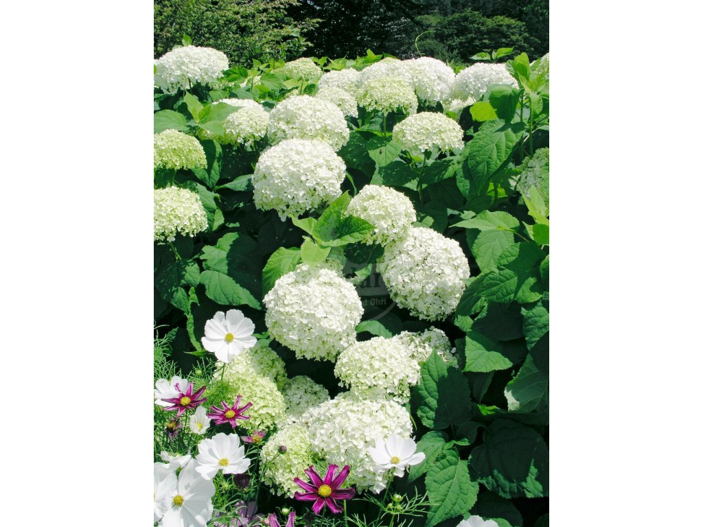 Hortenzia 'Annabelle' (Hydrangea arborescens 'Annabelle') očarí každého záhradníka veľkými okrúhlymi kvetmi až 18 cm širokými. Objavujú sa v polovici leta ako limetkovo zelenkasté kvietky a potom sa menia v snehovo bielu farbu. Hortenzia dorastá do výšky 1 až 1,5 ma kvitne od júla do septembra.