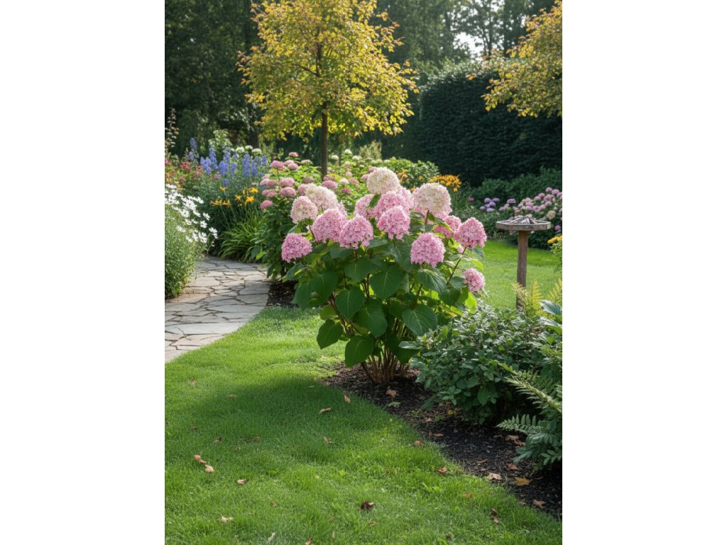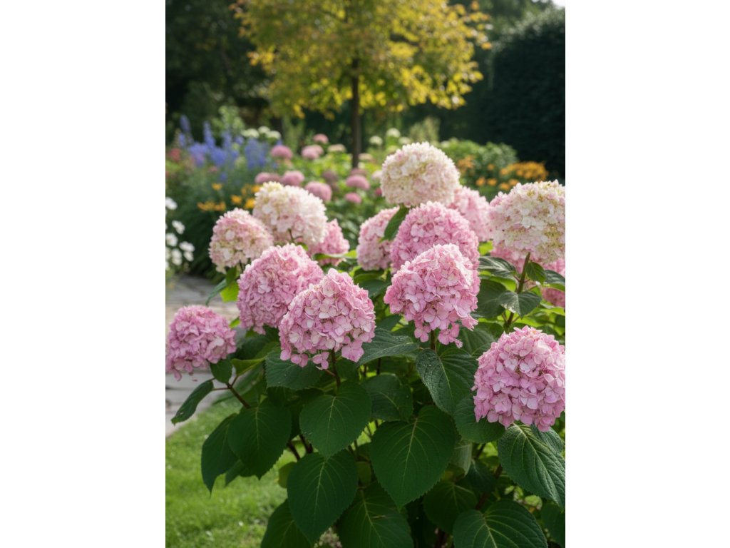 Hortenzia stromčekovitá 'Candybelle Bubblegum' (Hydrangea arb. Bubblegum) kvety sú pevné, dobre držia tvar a nepoliehajú ani po daždi. Vďaka kompaktnému rastu je ideálny do menších záhrad, trvalkových záhonov aj nádob.