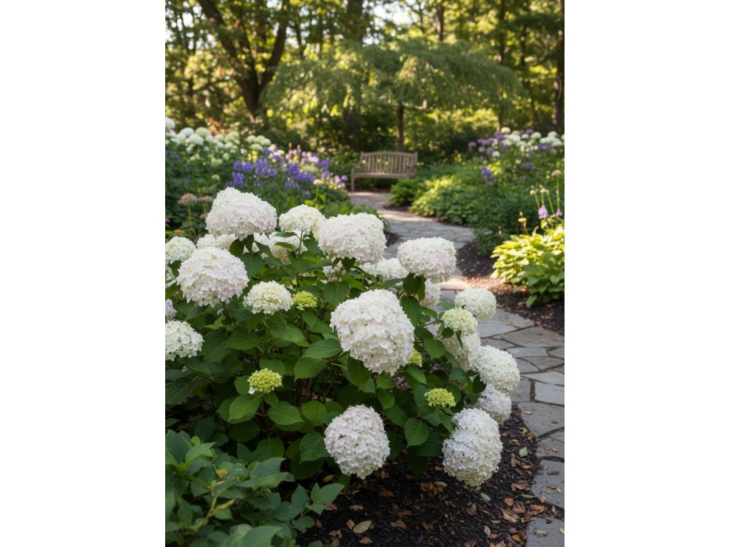Hortenzia stromčekovitá 'Candybelle Marshmallow' (Hydrangea arb. Marshmallow) kvety pôsobia veľmi elegantne a romanticky a vďaka pevným stonkám si dobre držia tvar aj po daždi. Odroda je ideálna do menších záhrad, trvalkových záhonov aj nádob.