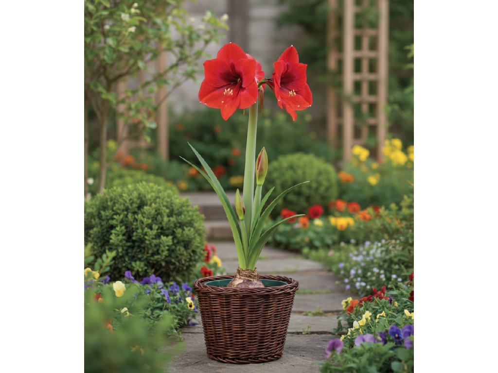 Amarylis 'Ferrari' (Hippeastrum 'Ferrari') je skutočným šperkom medzi hviezdnikmi. Jeho veľké, sýto červené kvety majú zamatový povrch a očarujúce lesk. Pôsobí mimoriadne elegantne a luxusne. Kvety dosahujú priemer až 17 cm a rozkvitajú na pevných, svetlo zelených stonkách doplnených štíhlymi, špicatými listami. Rastlina dorastá do výšky 50-60 cm. Skrášlia každý parapet.