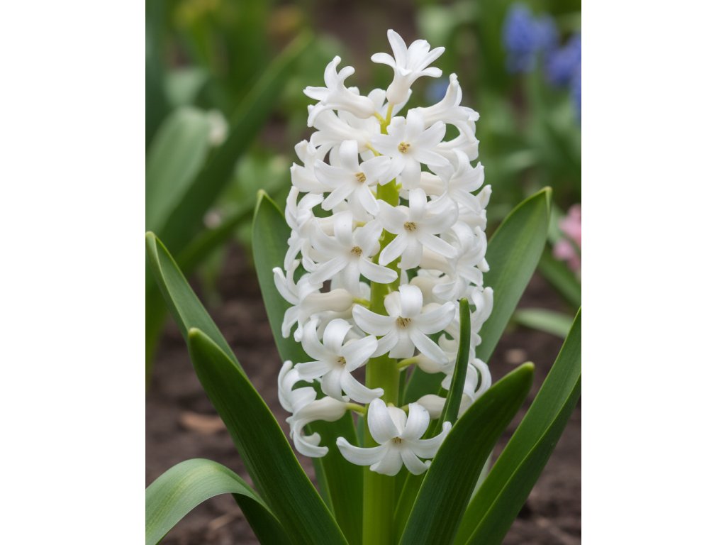Hyacint 'Carnegie' (Hyacinthus Carnegie) je nádherná biela odroda s hustými, plnými kvetenstvami, ktorá krásne prevonia záhradu aj interiér. Vďaka svojej čistej farbe pôsobí elegantne a ľahko sa kombinuje s ostatnými jarnými cibuľovinami.