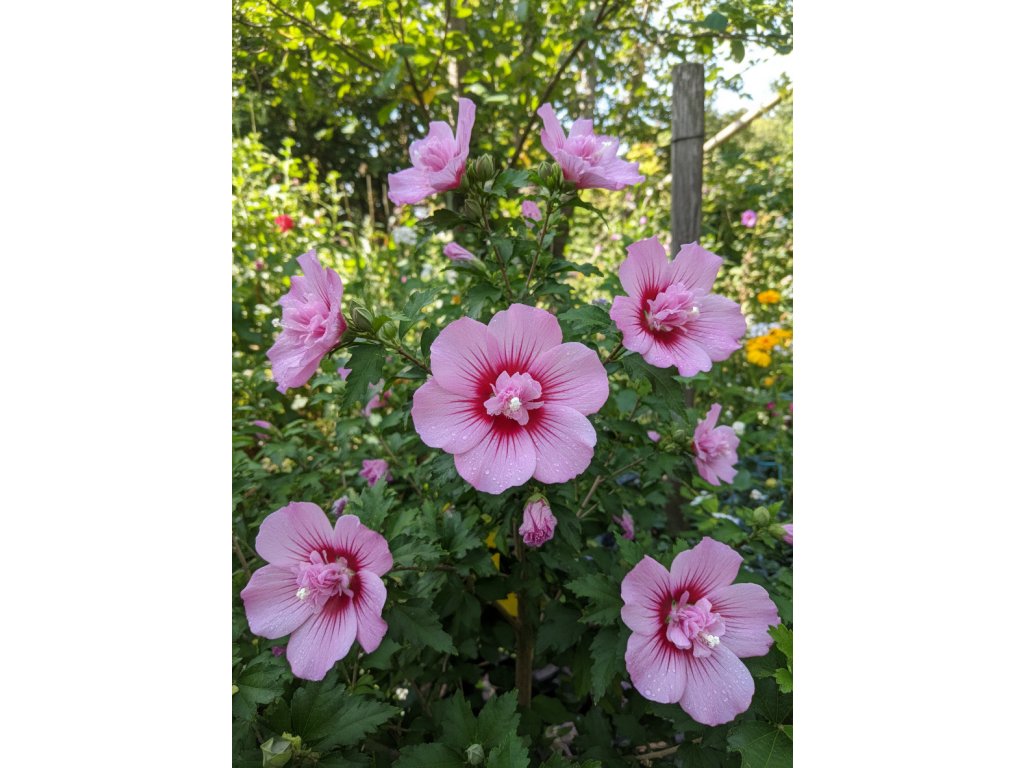 Ibištek sýrsky 'Maike' (Hibiscus syriacus 'Maike') je veľmi atraktívny opadavý okrasný ker, ktorý zaujme plnými, jemne ružovými kvetmi s ľahkým tmavším stredom. Vďaka plnokvetému vzhľadu pôsobia kvety bohato a elegantne. Kvitne dlho, od leta až do jesene, a patrí medzi veľmi cenené odrody pre neskoro letné záhrady.