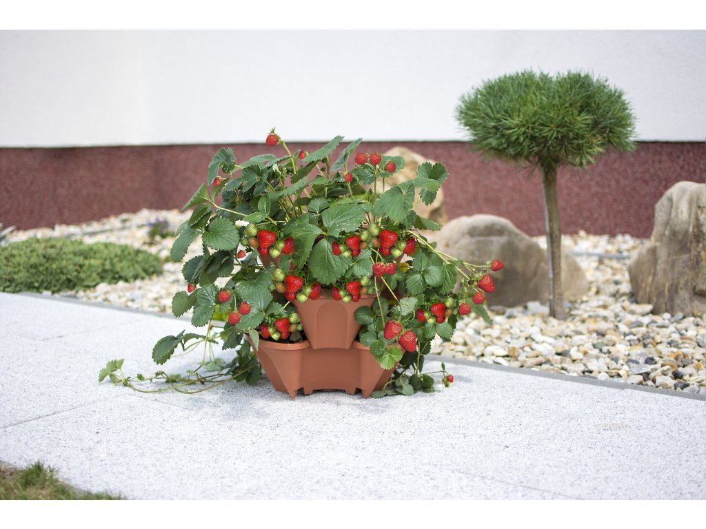 Kto by nemal rád čerstvo odtrhnuté jahody. Lenže nie každý má tú možnosť si ich vypestovať. Alebo snáď áno? My hovoríme: žiadny problém! Naša závesná jahodová kaskáda vám umožní pestovať previsnuté jahody takmer kdekoľvek, na balkóne aj terase. Vďaka štvorposchodovej konštrukcii nádoby rastliny šetria miesto, ale pritom rastú do krásy a plodia naplno.
