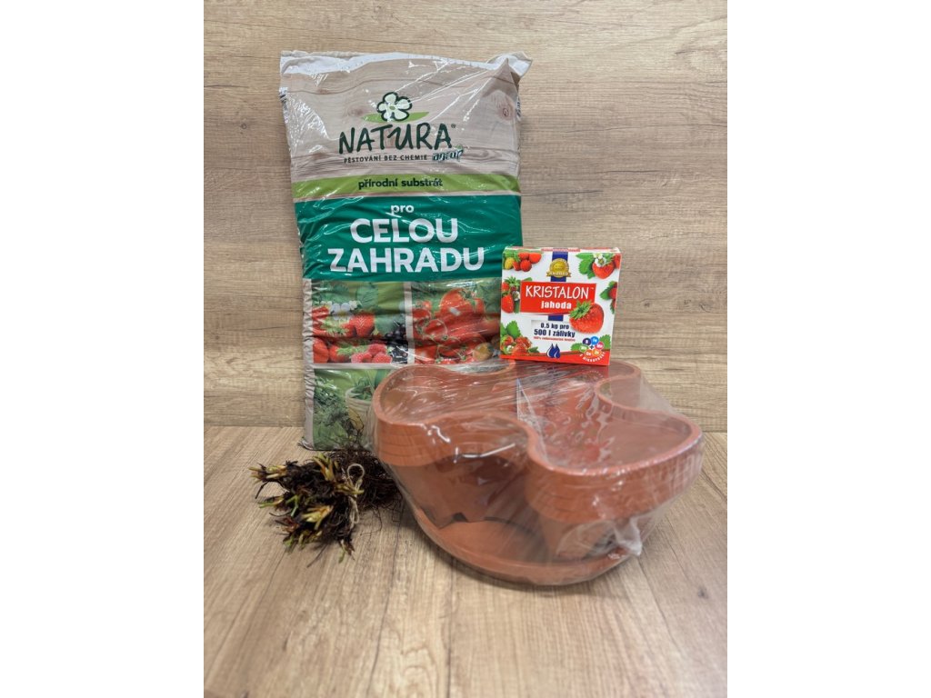 Sada obsahuje všetko, čo potrebujete na úspešné pestovanie: frigo sadenice previsnutej odrody 'Mara des Bois', ktorá chuťou pripomína lesné jahody, špeciálny substrát pre optimálny rast a hnojivo Kristalon Jahoda, ktoré zaistí bohatú úrodu.