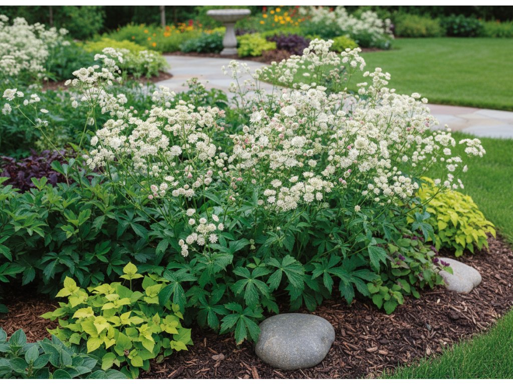 Jarmanka väčšia (Astrantia major 'Alba') je pôvabná trvalka, ktorá zaujme svojimi jemnými bielymi kvetmi v jemne vykrajovanom tvare hviezdy. Táto odroda je ideálna pre romantické a prírodné záhrady, kde vytvára nenápadnú, ale pritom výraznú dominantu. Jarmanka 'Alba' kvitne dlho a jej kvety priťahujú opeľovače.