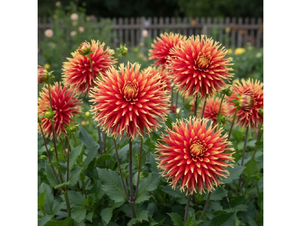 Georgína 'Show'n Tell' (Dahlia 'Show'n Tell') vyzerá ako exotická sasanka. Táto nápadná odroda vás poteší veľkými červenými kvetmi. Na špičkách prechádzajú do zlatožltej. Pôsobivé sfarbenie dodáva rastline energický, živý vzhľad. Jiřina dorastá do výšky okolo 100 cm. Vďaka svojej veľkosti i farebnosti je ideálny nielen na ozdobu kvetinových záhonov, ale aj do vázy či kytíc ako rezaný kvet.