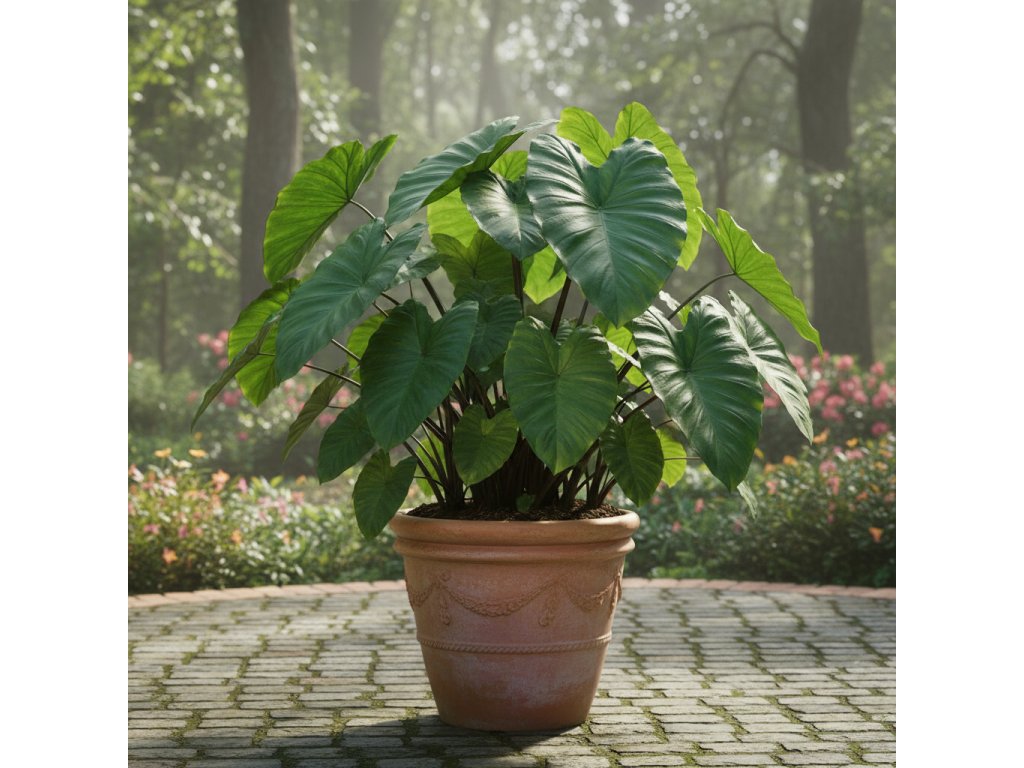 Kolokázia jedlá (Colocasia esculenta), známa tiež ako taro, je exotická rastlina s veľkými, srdcovitými listami, ktoré dodávajú záhrade tropický vzhľad. Táto hľuznatá rastlina je cenená nielen pre svoj dekoratívny vzhľad, ale aj pre svoje jedlé hľuzy, ktoré sú základom kuchyne v mnohých tropických oblastiach. Kvitne vzácne, ale jej výrazné listy sú samy o sebe dostatočnou ozdobou.