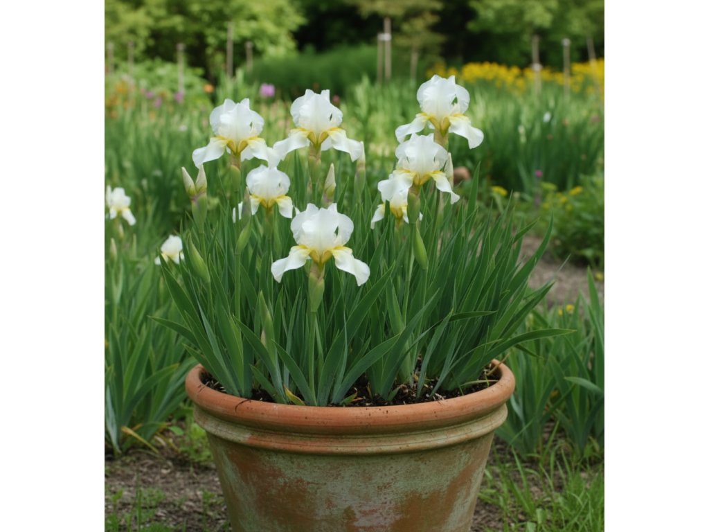 Díky pěstování v květináči je vhodný k výsadbě po celou vegetační sezónu. Rostlina vytváří štíhlé, vzpřímené trsy úzkých listů a kvete bohatě koncem jara. Nejlépe vynikne v kombinaci s tmavě kvetoucími trvalkami.