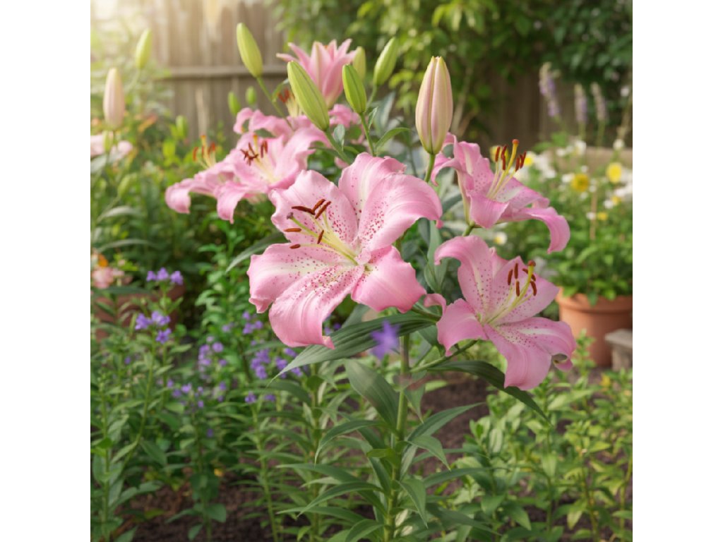 Ľalia 'Josephine' (Lilium 'Josephine') vnesie do záhrady romantickú náladu. Táto orientálna ľalia vás uchváti svetlo ružovými kvetmi s krémovým stredom a vínovo ružovým bodkovaním. Miskovito tvarované kvety smerujú nahor a vydávajú príjemnú, korenistú vôňu. Dorastá do výšky 100–120cm a kvitne počas júna až augusta.Ľalia 'Josephine' je vhodná na rez a vynikne ako samostatne, tak v skupinovej výsadbe. Výborne sa hodí do záhonov, ale aj do nádob na terasy a balkóny. Vďaka pevným stonkám a dlhotrvajúcim kvetom je ideálny aj do letných kytíc.