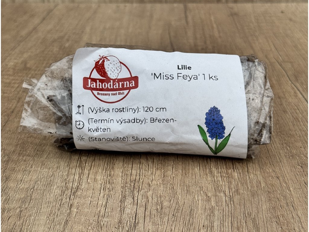 Ľalia (Lilium 'Miss Feya') je výrazná a pôvabná odroda s veľkými, sýto červenými kvetmi, ktoré zdobia tmavšie pruhy a bodkovanie. Jej kvety majú jemne zvlnené okraje a príjemnú vôňu, ktorá priťahuje pozornosť nielen v záhrade, ale aj vo váze. Ľalia 'Miss Feya' sa hodí na slnečné záhony aj do kvetináčov a je ideálna pre milovníkov výrazných farieb a elegancie.
