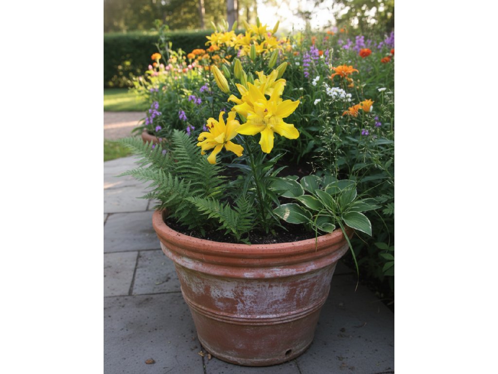 Ľalia 'Tomos' prináša efektné kvety v nádhernej blatouchovej žltej farbe, ktoré majú veľmi zvláštny pavúkovitý až papagájový tvar. Rastlina dosahuje výšku 90 cm, čím pridáva do záhrady výrazný a neobvyklý prvok.Vďaka svojmu spoľahlivému rastu a ľahkej starostlivosti je táto ľalia perfektnou voľbou do každej záhrady.