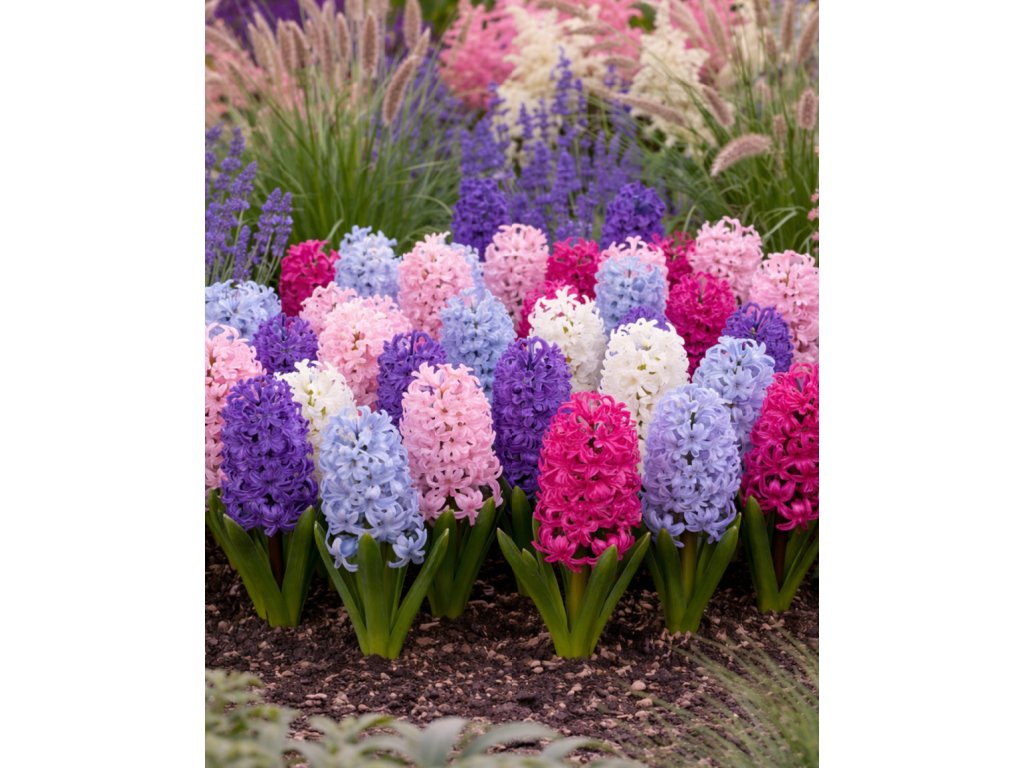 Neviete si medzi farbami vybrať? Voľba farebného mixu hyacintov môže byť tým správnym riešením. Farebná koláž prekrásnych plnokvetých hyacintov môže byť a na vašej záhrade či balkóne. Stačí na jeseň zasadiť a na jar sa už budete tešiť z kvetov a prekrásnej vône.