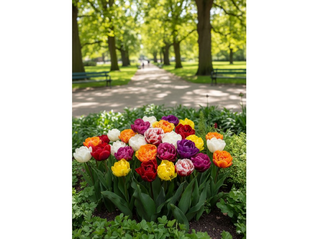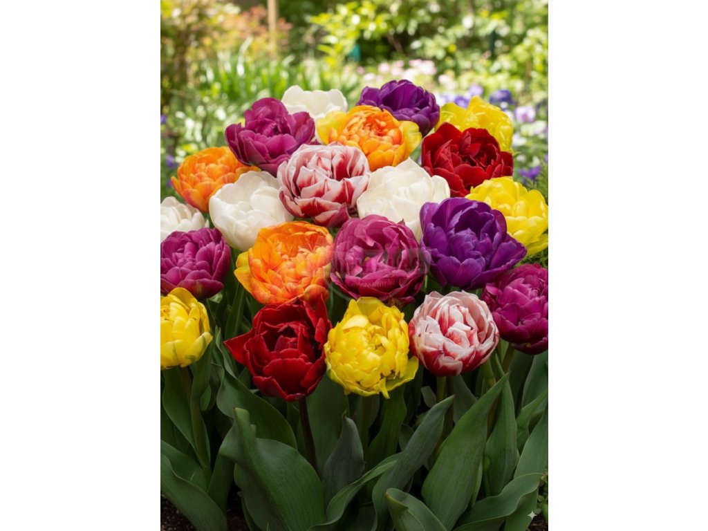 Vneste do svojej záhrady farebnú krásu v podobe plnokvetých tulipánov s bohatými okvetnými lístkami rôznych farieb. Táto zmes urobí radosť aj v nádobách, ktoré môžu skrášliť vaše zimné záhrady. Akonáhle cibuľky tulipánov zasadíte, môžete veriť v ich odolnosť. Pred výsadbou sú ešte citlivé na mráz, kedy je treba dávať na ne pozor.