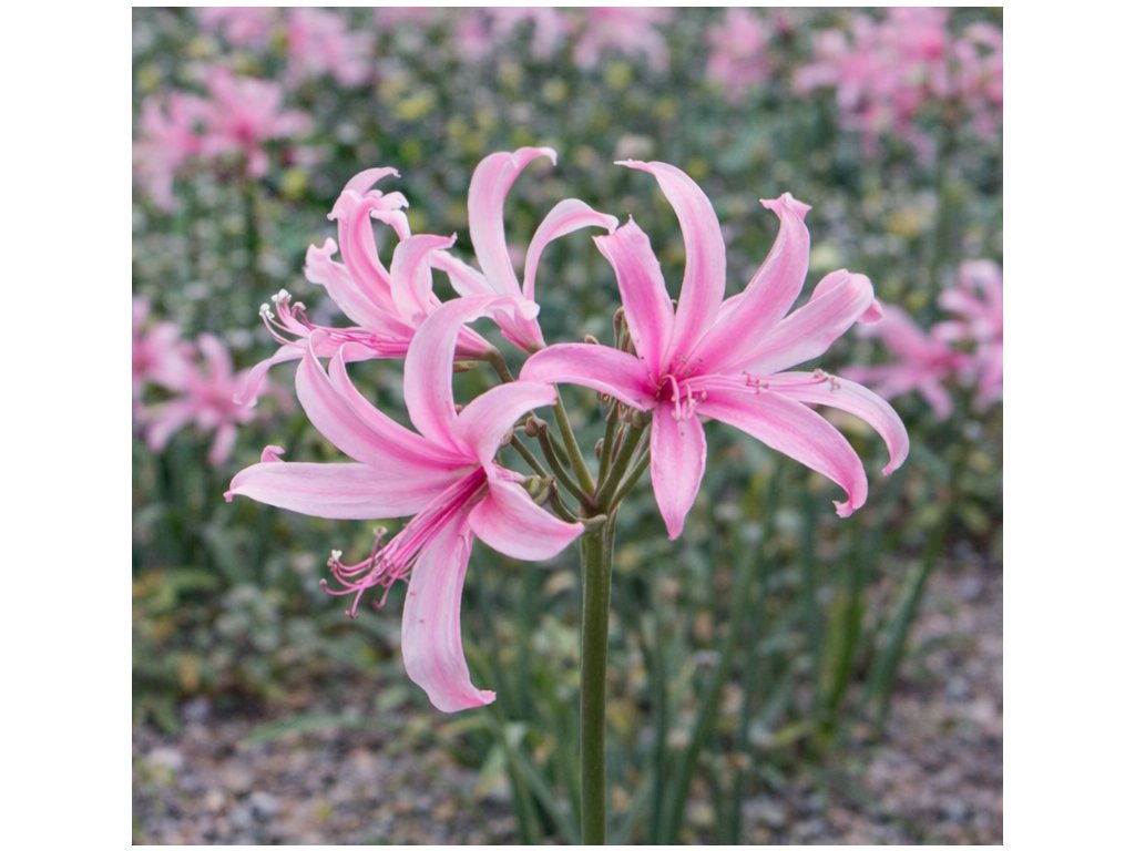 Nerine 'Bowdenii' je exotická kráska pôvodom z Afriky, ktorá miluje teplo a slnko. Koncom leta a na jeseň vás bude tešiť pôvabnými kvetenstvami s 5 až 10 kvetmi ružovej farby. Veľmi príjemne vonia. Zaujímavé sú aj jej úzke pásovité listy.