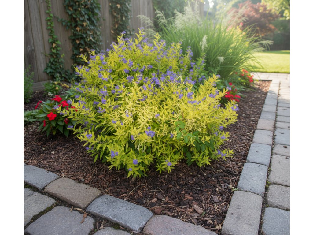 Veľmi dekoratívny nízky okrasný ker, ktorý zaujme predovšetkým jasne žltými až zlatozelenými listami a kontrastnými modrofialovými kvetmi. Kvitne v čase, keď už mnoho kríkov odkvitlo, a preto je veľmi cenný pre neskoro letné a jesenné záhrady. Kvety sú bohaté na nektár a silne lákajú včely a motýle.