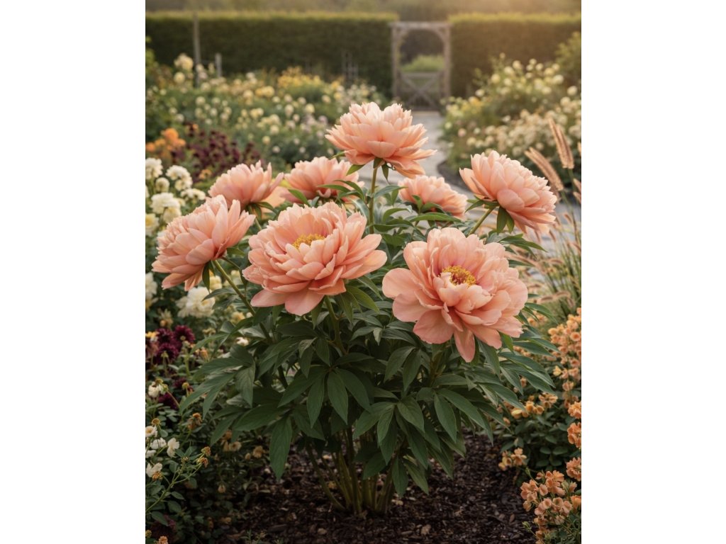 Pivonka 'Copper Kettle' prináša polodvojité až dvojité kvety v odtieňoch červenej, žltej a oranžovej, ktoré z diaľky vytvárajú medený dojem. Vyniká tiež príjemnými tmavo zelenými listami, pevne nesenými na robustnej a dobre tvarovanej rastline.