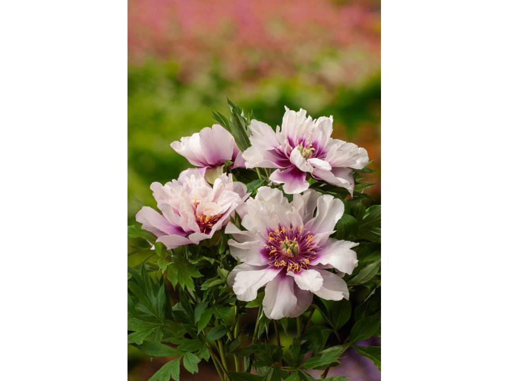 Pivonka 'Cora Louise' (Paeonia x itoh 'Cora Louise') vznikla krížením bylinnej a kríkovej pivonky. Týmto spojením získala veľké kvety s nezameniteľným sfarbením. Výrazné purpurové lúče a svetlo ružové tóny okvetných lístkov vytvárajú spolu so zlatožltými tyčinkami v strede kvetov pôsobivý farebný kontrast.