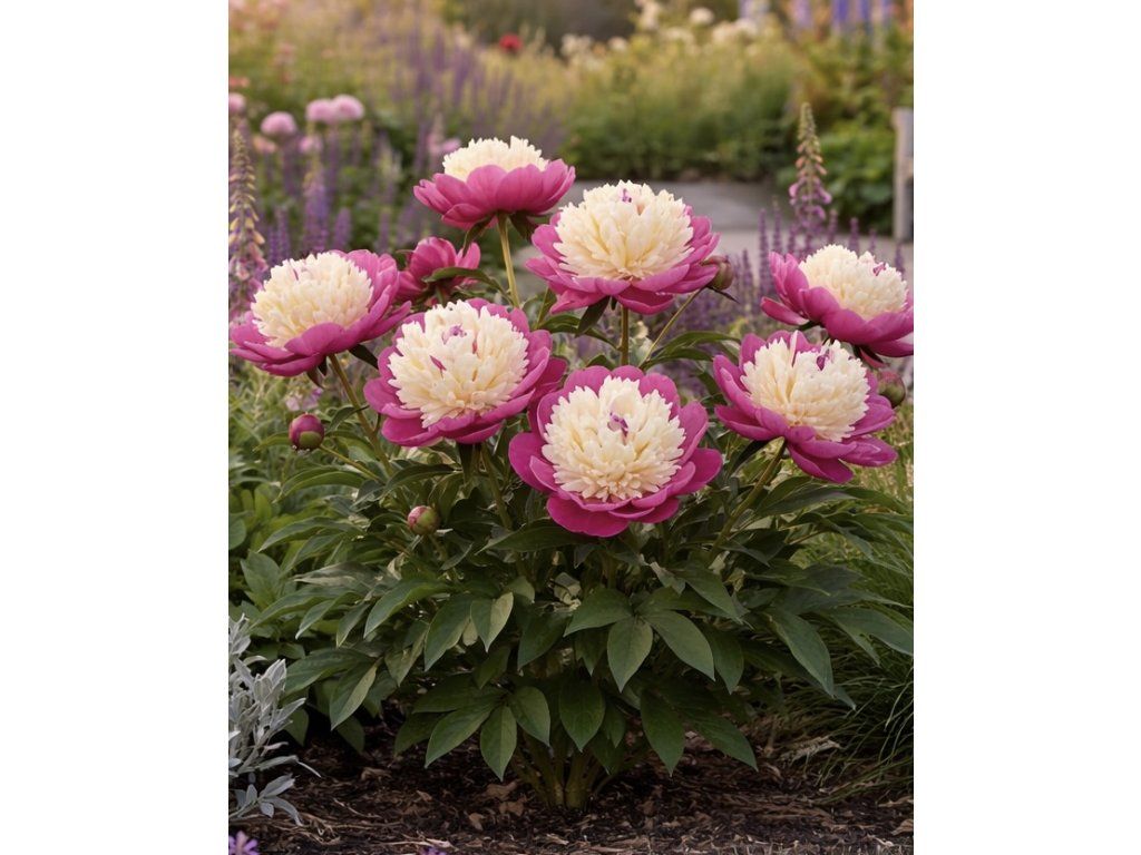 Pivonka 'Gay Paree' (Paeonia lactiflora 'Gay Paree') je jedinečná odroda s výraznými kontrastnými kvetmi. Vonkajšie okvetné lístky majú sýto ružový odtieň, zatiaľ čo stred je tvorený bohatým zhlukom krémovo bielych lístkov. Táto odroda kvitne od júna do júla a je ideálna pre romantické záhrady aj ako ozdoba slávnostných kytíc.