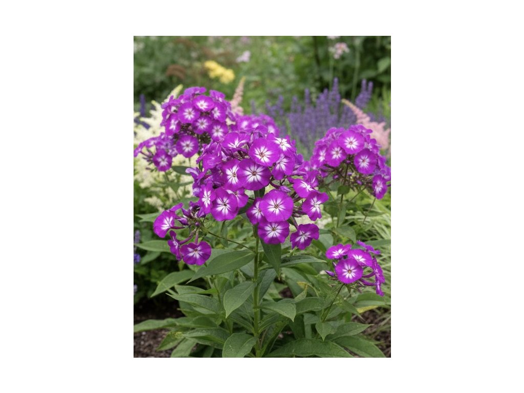 Plamienka 'Uspech' (Phlox paniculata) je pôvabná trvalka, ktorá vyniká žiarivo fialovými kvetmi s bielym stredom. Táto odroda plamienky kvitne v lete od júla do septembra a svojou dlhou dobou kvitnutia prináša do záhrady sviežu farbu a jemnú vôňu. Kompaktný a hustý rast ju predurčuje na pestovanie do zmiešaných trvalkových záhonov, kde vytvára nádherný farebný kontrast.