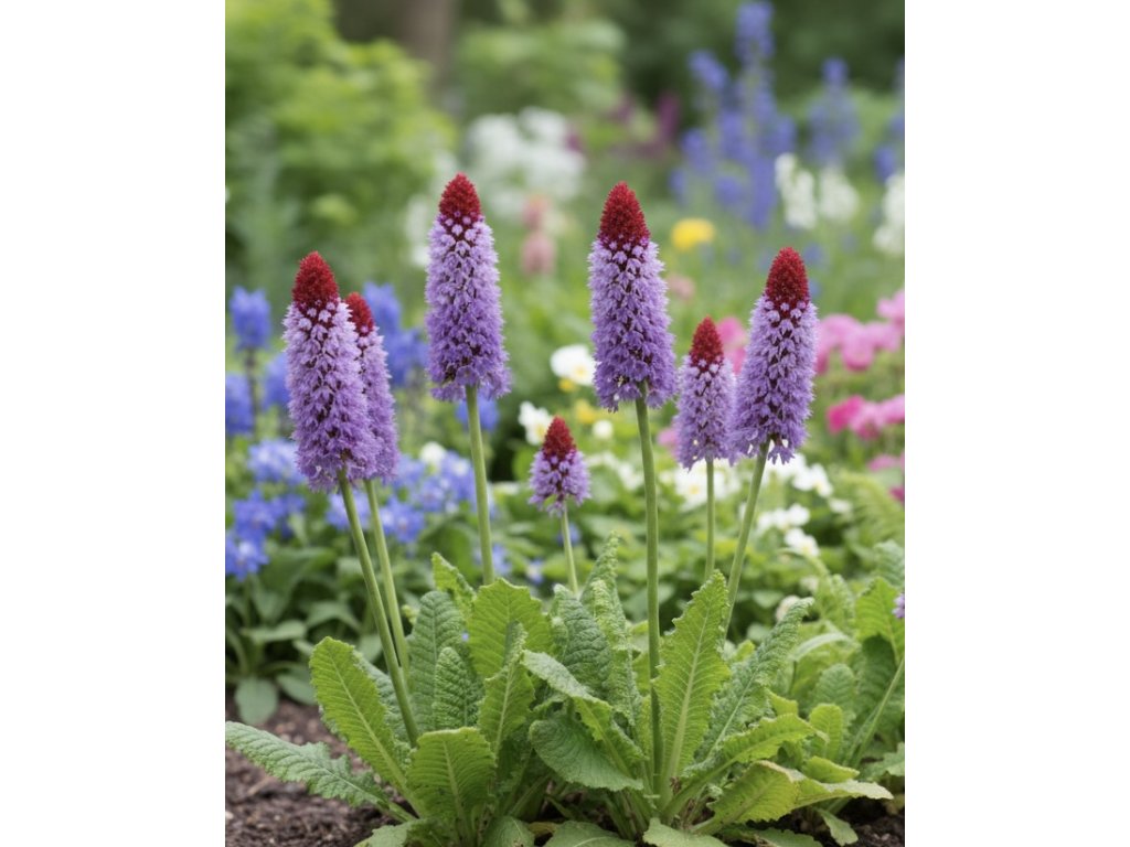 Prvosienka orchideokvetá 'Primula Vialli' (Primula vialii) je jedinečná trvalka, ktorá vás očarí neobvyklým vzhľadom. Charakteristické kvetenstvo v tvare štíhlych klasov vytvára pôsobivý farebný prechod z červenej do jemnej fialovej farby. Svojou krásou oživí každú záhradu. Kvitne od júna do júla a dorastá do výšky 30–40 cm.