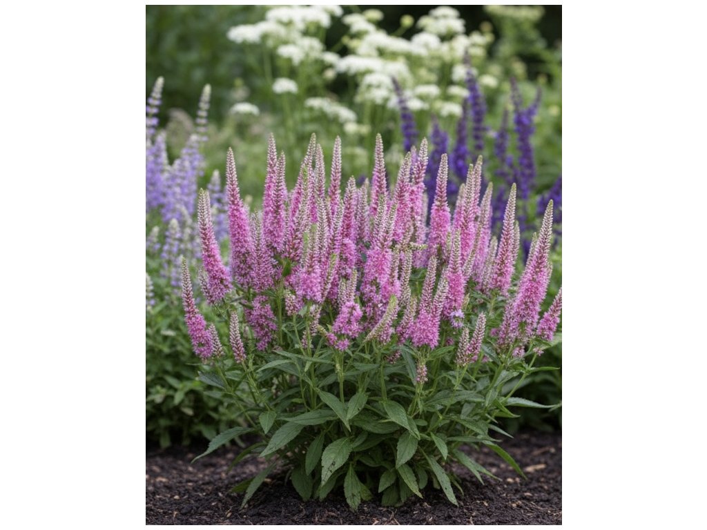 Rozrazil 'Pink' (Veronica spicata) je atraktívna trvalka s klasovitými kvetenstvami v nežnej ružovej farbe. Kvitne od júna do augusta a dorastá do výšky 30-50 cm. Vytvára husté trsy vzpriamených stoniek s úzkymi, sýto zelenými listami, ktoré krásne kontrastujú s jemnými kvetmi.