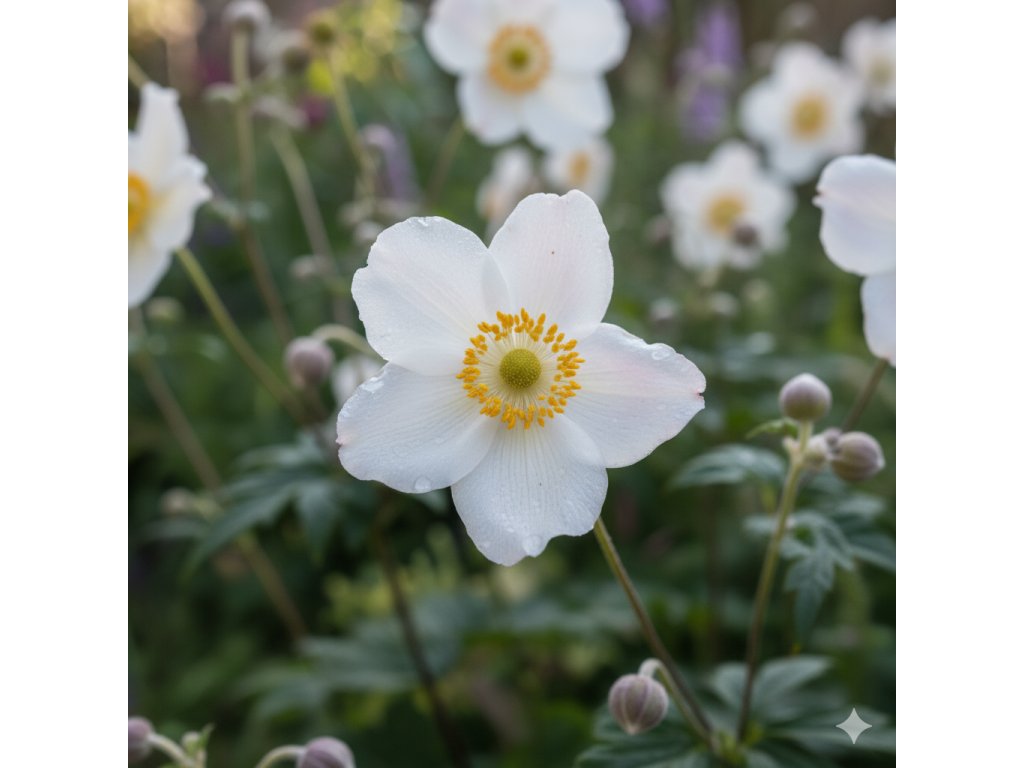 Sasanka japonská 'Andrea Atkinson' (Anemone hupehensis 'Andrea Atkinson') je pôvabná jesenná trvalka s elegantnými snehovo bielymi kvetmi, ktoré sa objavujú od augusta až do októbra. Na vzpriamených stonkách vyrastajú jednotlivé kvety alebo riedke kvetenstvá. Pôsobí ľahko a vzdušne. Sasanka dorastá do výšky okolo 80 cm a krásne vynikne v zmiešaných trvalkových záhonoch aj ako rezaný kvet do vázy.