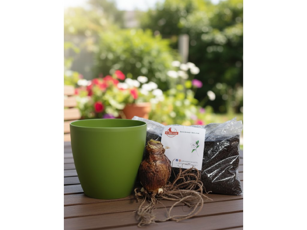 V balení nájdete všetko potrebné pre jednoduchú výsadbu: kvalitný záhradnícky substrát, elegantný kvetináč aj zdravú cibuľu hviezdnika pripravenú na prebudenie. Stačí ju zasadiť, držať sa pravidiel rýchlenia as trochou starostlivosti sa za niekoľko týždňov môžete tešiť na exotický kvet, ktorý rozžiari váš domov. Set sa skvele hodí ako nevšedný vianočný darček.