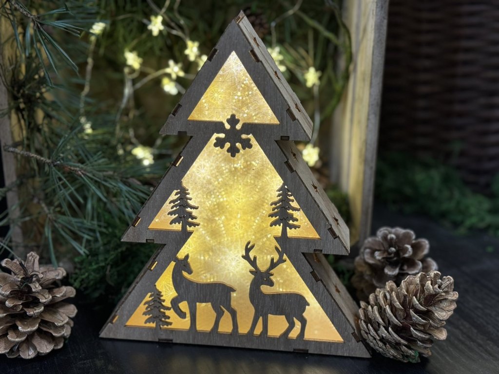 Nechajte sa očariť originálnou vianočnou dekoráciou v tvare stromčeka, ktorý svieti. Vhodný pre všetkých milovníkov lesa, dreva alebo zvieratiek a prírody.