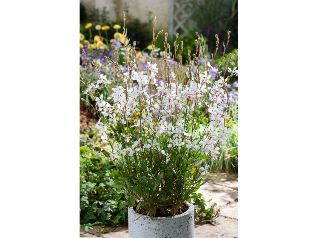 Sviečkovec 'Whirling Butterflies' (Gaura lindheimeri 'Whirling Butterflies') je romantická trvalka dorastajúca do výšky 70–80 cm. Na tenkých, elegantných stonkách sa od mája až do septembra objavujú krehké biele kvety. Vo vánku pripomínajú kŕdle drobných motýľov. Jej vzdušný vzhľad a dlhé kvitnutie robia z gaury ideálnu rastlinu do prírodných záhonov. Hodí sa k okrasným trávam, ružiam aj do nádob. Priťahuje motýle, včely a dokonca aj motýlie kolibríky.