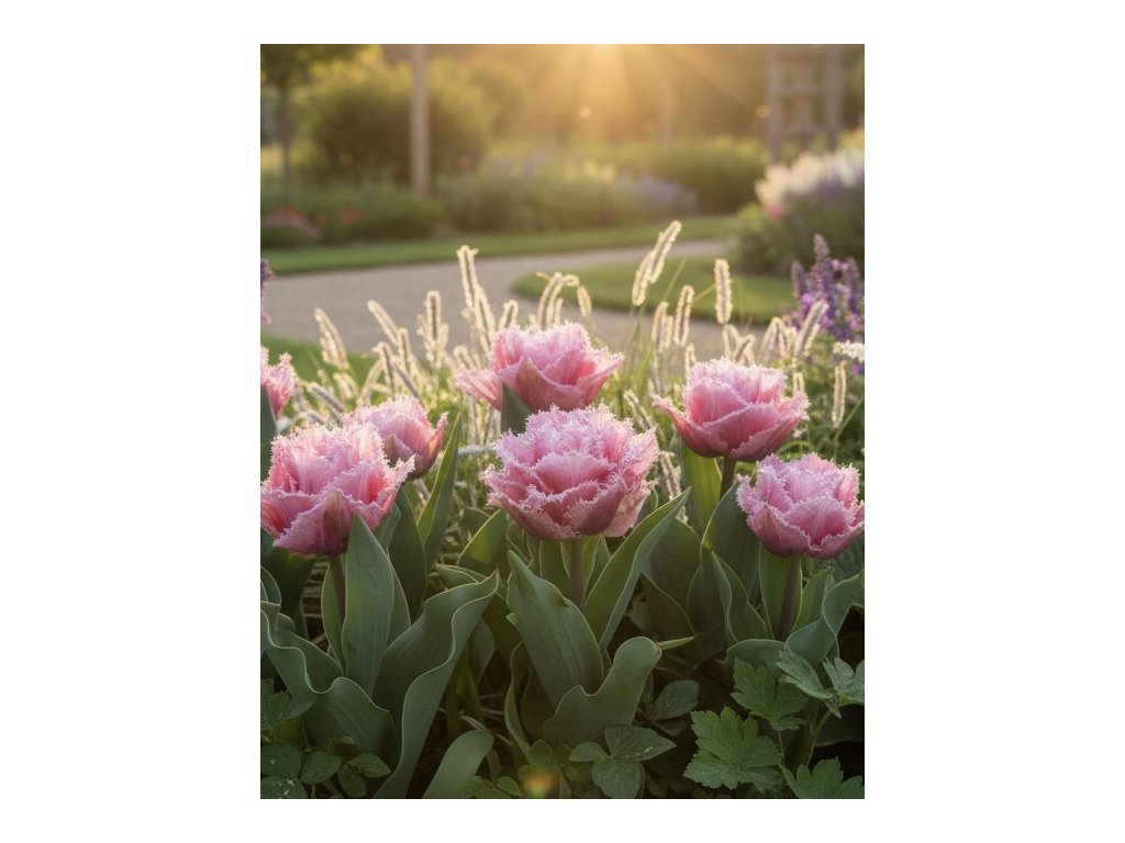 Tulipán (Tulipa) 'Cairns' je nový plnokvetý tulipán, ktorý sa pýši jemnými ružovými kvetmi a kompaktnou výškou iba 30-40 cm. Tento kultivar prináša kombináciu nevšedných farieb a netradičného tvaru okvetných lístkov.