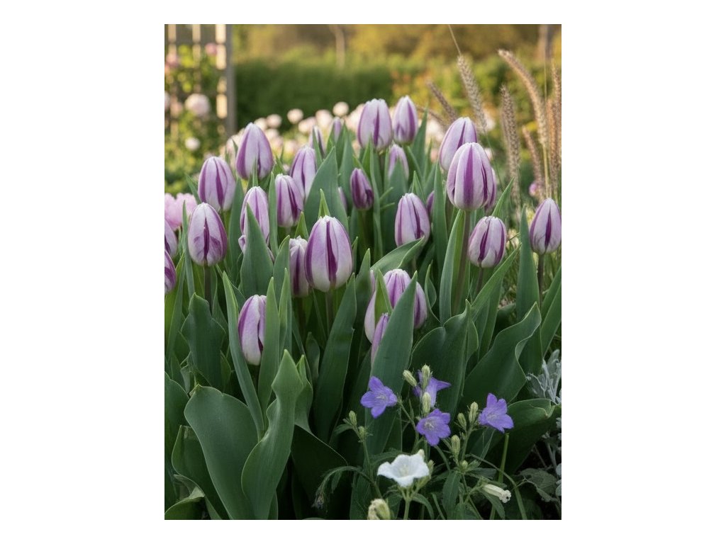 Tulipán (Tulipa) Flaming Flag ponúka jedinečnú kombináciu fialovej a bielej, ktorá prináša krásu do každej záhrady.
