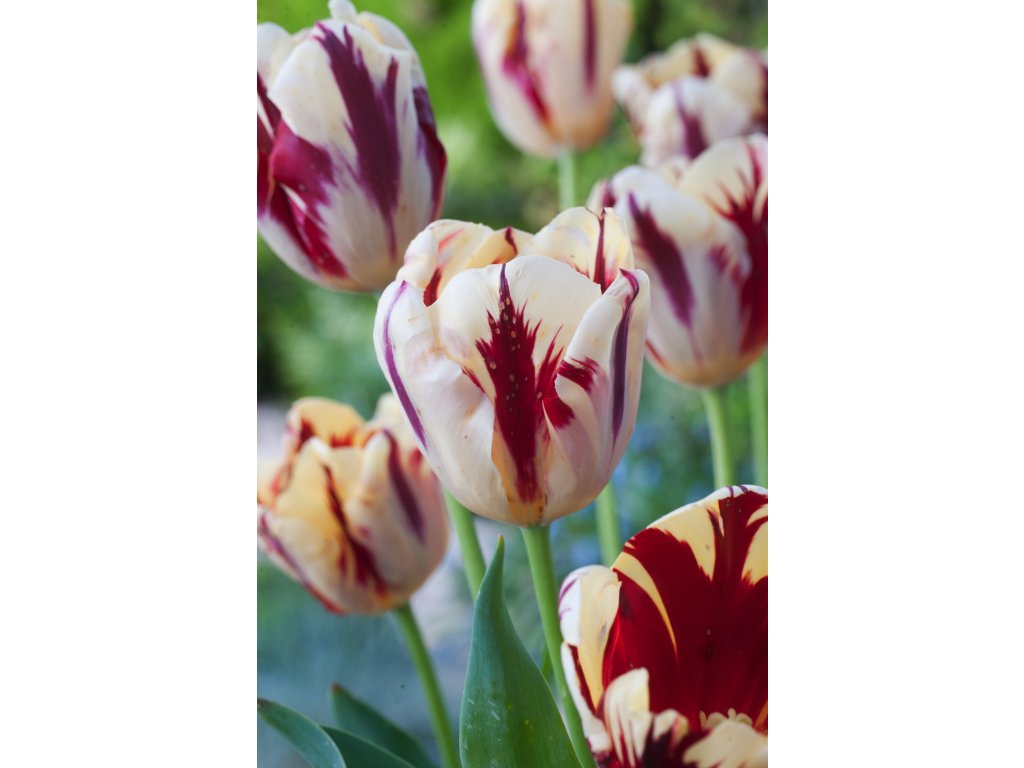 Tulipán 'Grand Perfection' (Tulipa 'Grand Perfection') ozdobí vašu záhradu nádhernými, krémovo bielymi kvetmi s výrazným karmínovo červeným žilkovaním. Sú ideálne na výsadbu do okrasných záhonov, skaliek alebo nádob na terasách a balkónoch. Kvety sa skvele hodia aj na rez do vázy, v ktorých ich jedinečné sfarbenie dokonale vynikne. Rastlina dorastá do výšky cca 50 cm a kvitne v apríli až máji.