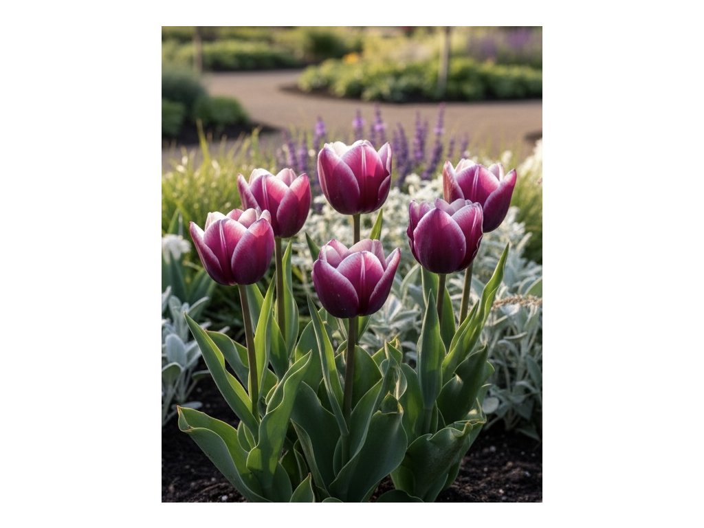 Tulipán (Tulipa) Purple Elegance je nádherný viackvetý tulipán s fialovým operením až lila farbou s bielym okrajom, ktorý pripomína nádych levandule ružovej. Tento krásny tulipán sa vyníma ako kytica na stonke s tromi až piatimi kvetmi, čo ho robí vynikajúcim novým prírastkom do vašej záhrady.