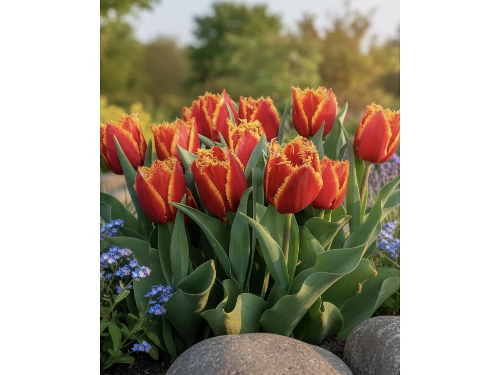 Tulipán Tiano je atraktívna odroda, ktorej špičky okvetných lístkov sú strapaté. Jeho sýto jasne červená farba v kombinácii s dotykmi kanárikovo žltej sú zosobnením jarnej nálady. Veselo kvitnúce tulipán možno použiť aj do kytíc a iných aranžmánov rezaných kvetov. Exotické a elegantné, pestrofarebné kvety pôsobia skvelým dojmom všade, kde rastú.