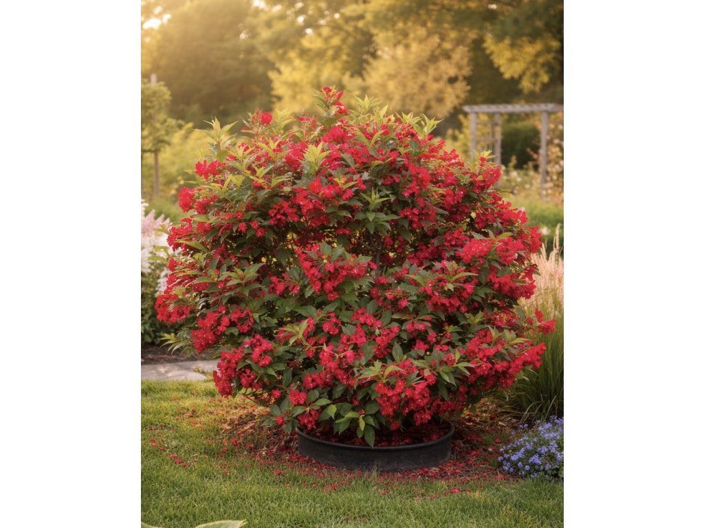 Vajgelia kvetnatá (Weigela florida) 'Red Prince' je výrazný ker dorastajúci do výšky 1,5-2 metre, ktorý zaujme svojimi jasne červenými kvetmi a sýto zelenými listami. Kvitne bohato od mája do júna, pričom jeho nápadné červené kvety nádherne kontrastujú s tmavo zeleným olistením. Tento ker je ideálnou voľbou pre okrasné záhony, živé ploty alebo ako solitérny prvok.