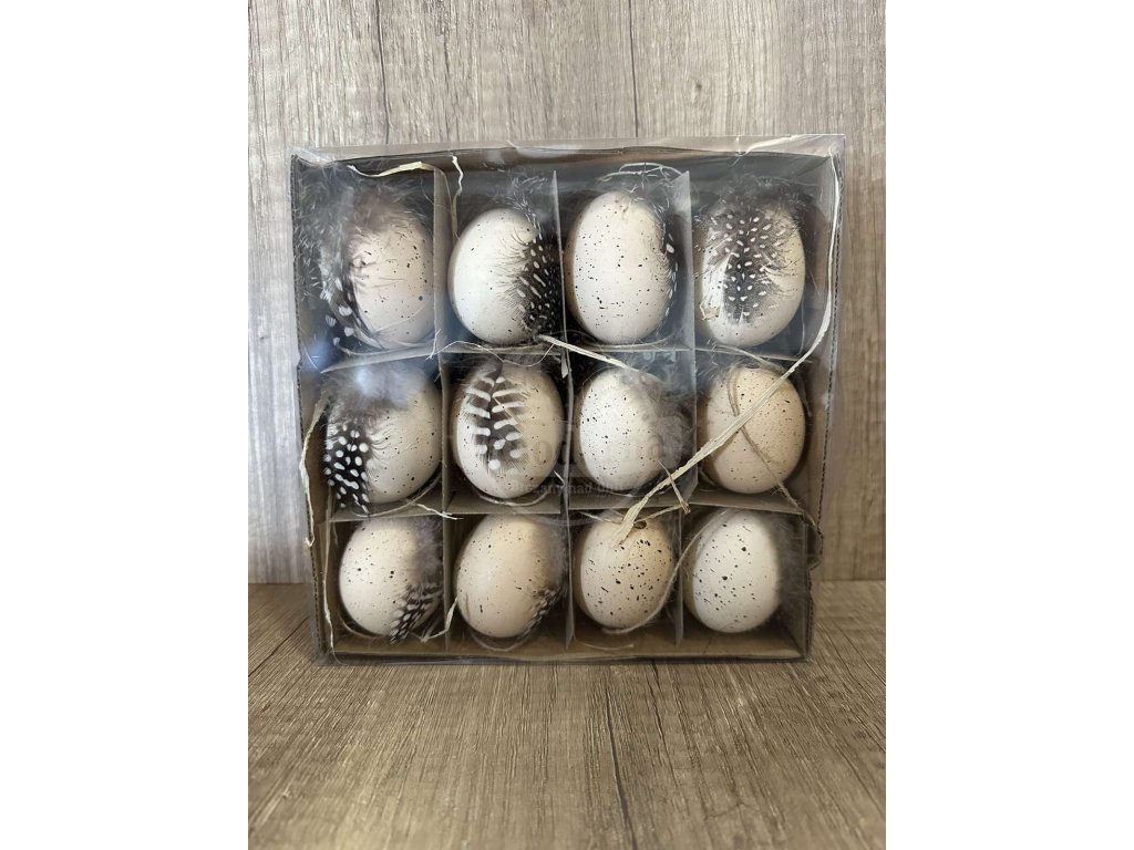 Veľkonočné vajíčka v prírodnej farbe s pierkom. Dekorácia vo vidieckom štýle pre kúzelné jarné Veľká noc.