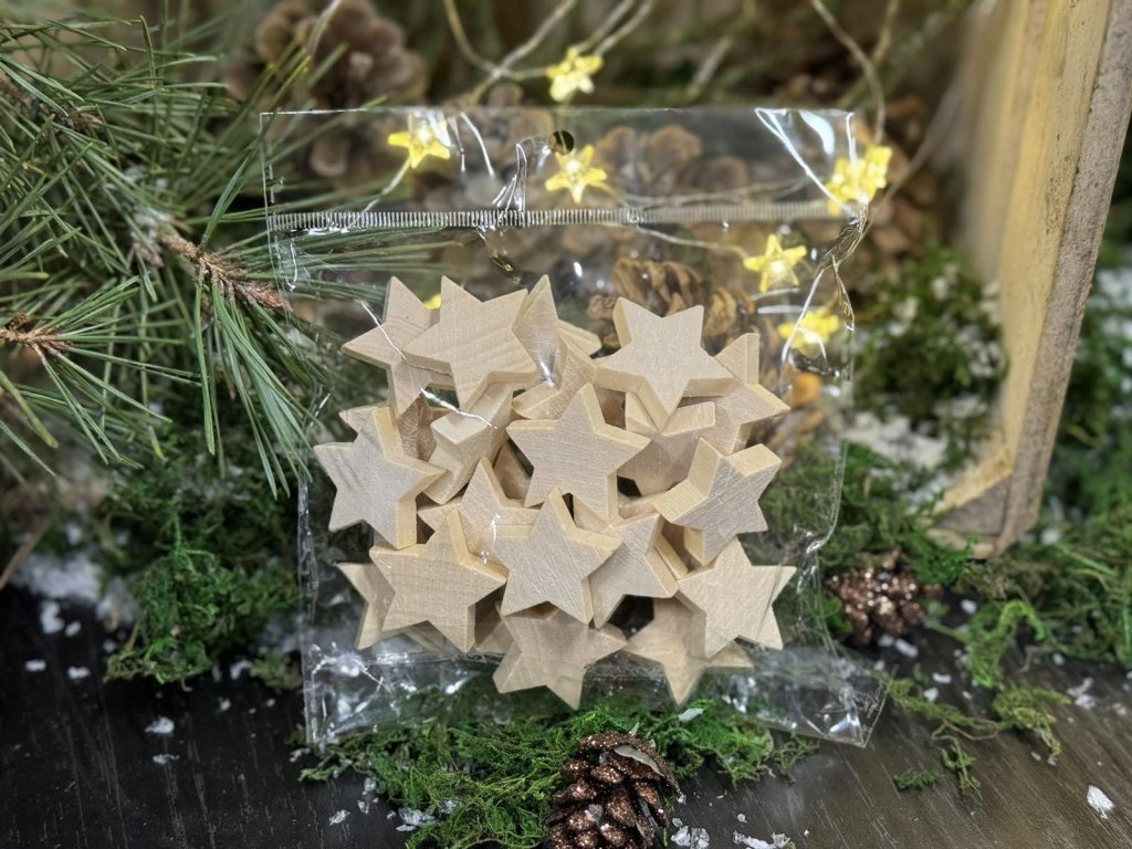 Súprava drevených ozdôb v tvare hviezdičiek vynikne v každej zimnej i vianočnej dekorácii.