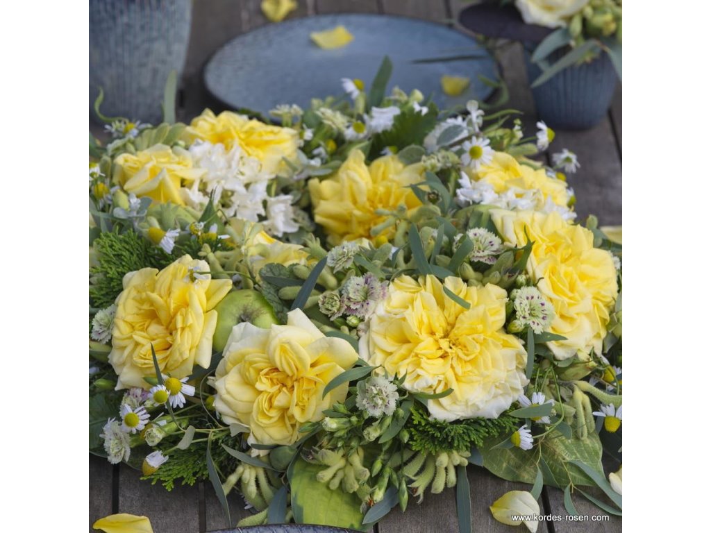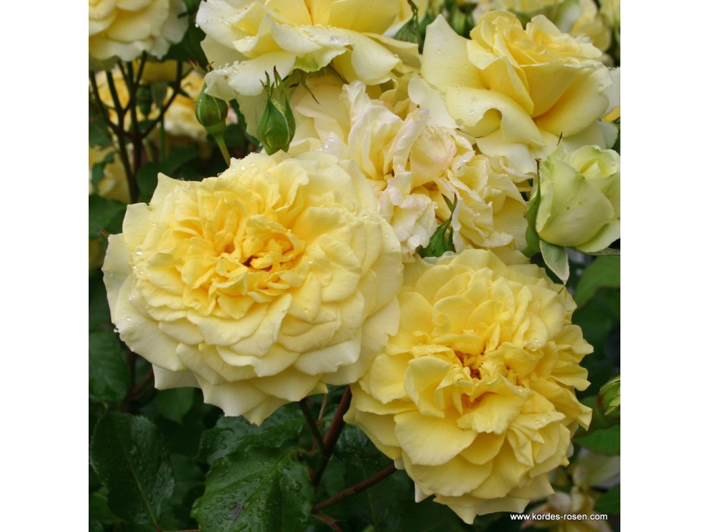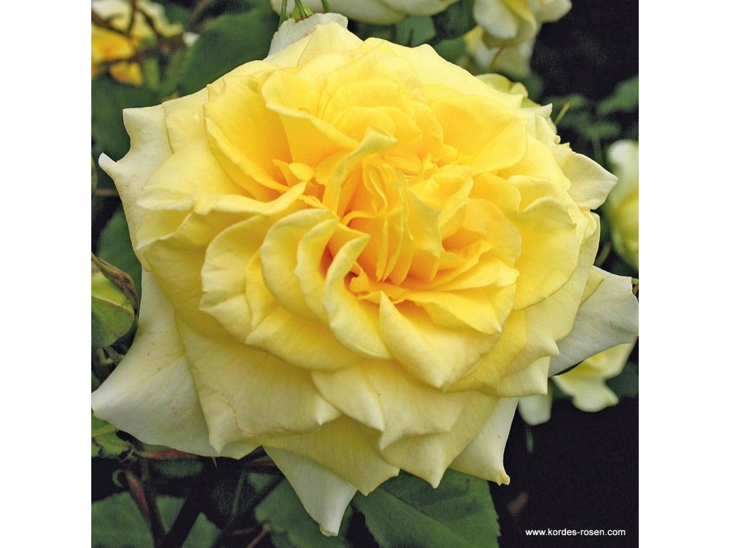 Veľkokvetá ruža Sterntaler má veľké, 12cm plné kvety v sýtych odtieňoch žltej. Jedná sa o vynikajúcu odrodu čajovej ruže, ktorá vytvára robustný ker s množstvom kvetov. Ruže kvitne opakovane a môžete ju pestovať ako v záhone, tak v kvetináči na terase.