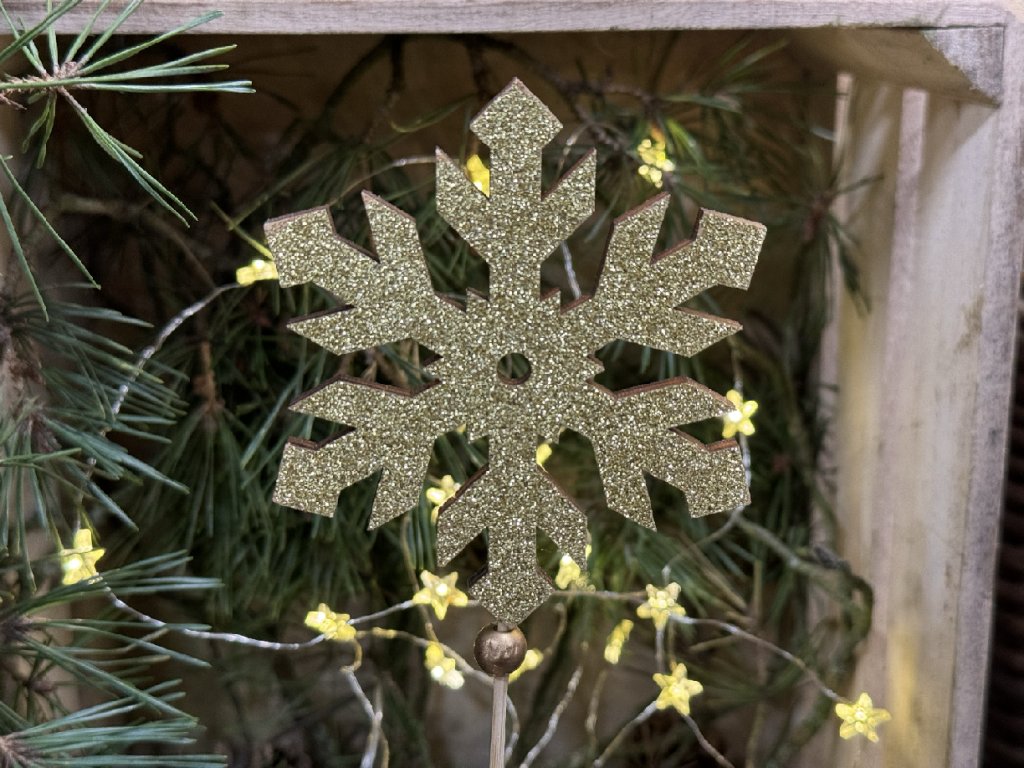 Zapichovacia ozdoba zlato trblietavá vločka pôsobí veľmi slávnostne. Skvele doplnia vaše zimné a vianočné dekorácie. Vhodná na dozdobenie váz, kvetináčov a ďalších dekorácií.