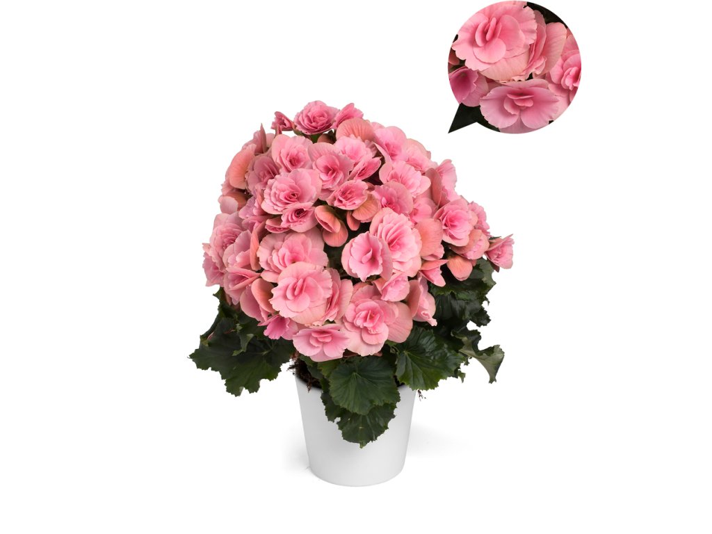 Begónia elatior 'Berseba Light Pink®' sa vyznačuje kvetmi v ružových tónoch a svojou schopnosťou rásť aj na tmavších miestach doplní skrytejšie zákutia vášho domu.