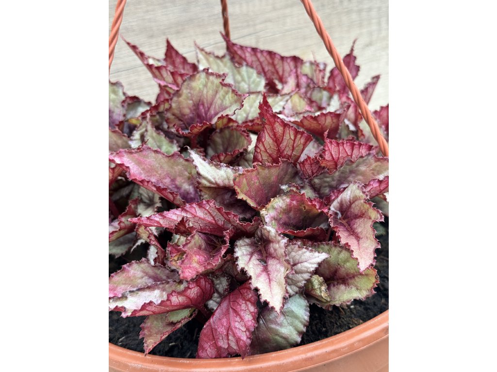 Begónia kráľovská 'Maori Haze®' je so svojimi zelenými listami s fialovým stredom skvelým doplnkom.