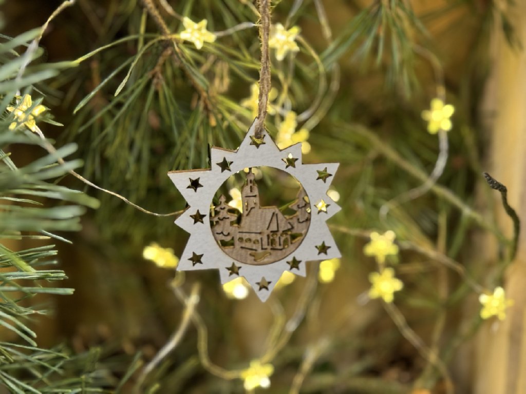 Skrášlite váš domov či stromček s ozdobami v prírodnom štýle. Pridajte do vašej zbierky nežnú vyrezávanú ozdobu s kostolom.