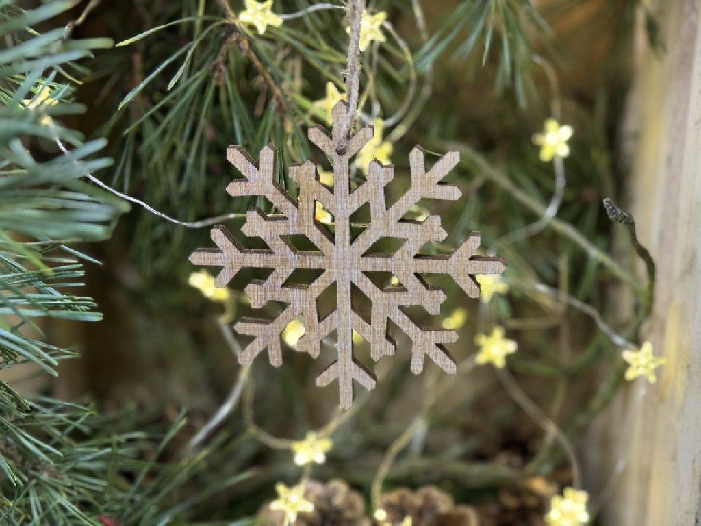 Skrášlite váš domov či stromček s ozdobami v prírodnom štýle. Pridajte do vašej zbierky pôvabnú vyrezávanú ozdôbku v tvare vločky.