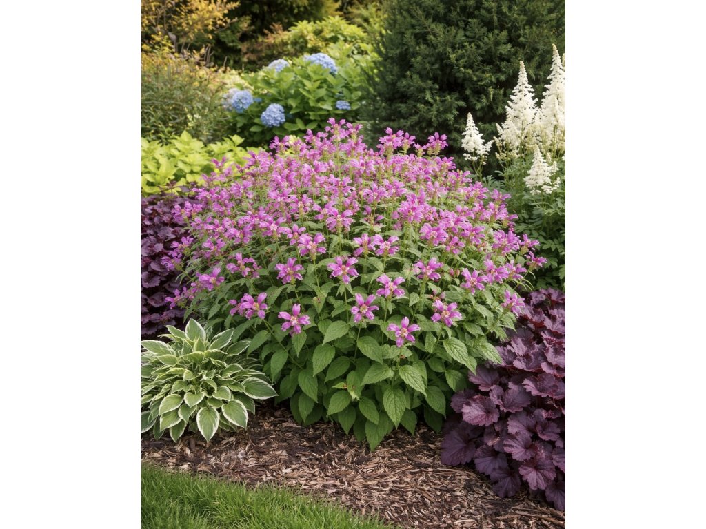 Korytnačka 'Chelone obliqua' vytvára bochníkovité kríky s pevnými výhonkami a lesklými sýto zelenými listami so zúbkovaným okrajom. Koncom leta vás potom poteší svojimi výraznými ružovými kvietkami, ktoré priťahujú opeľovače.